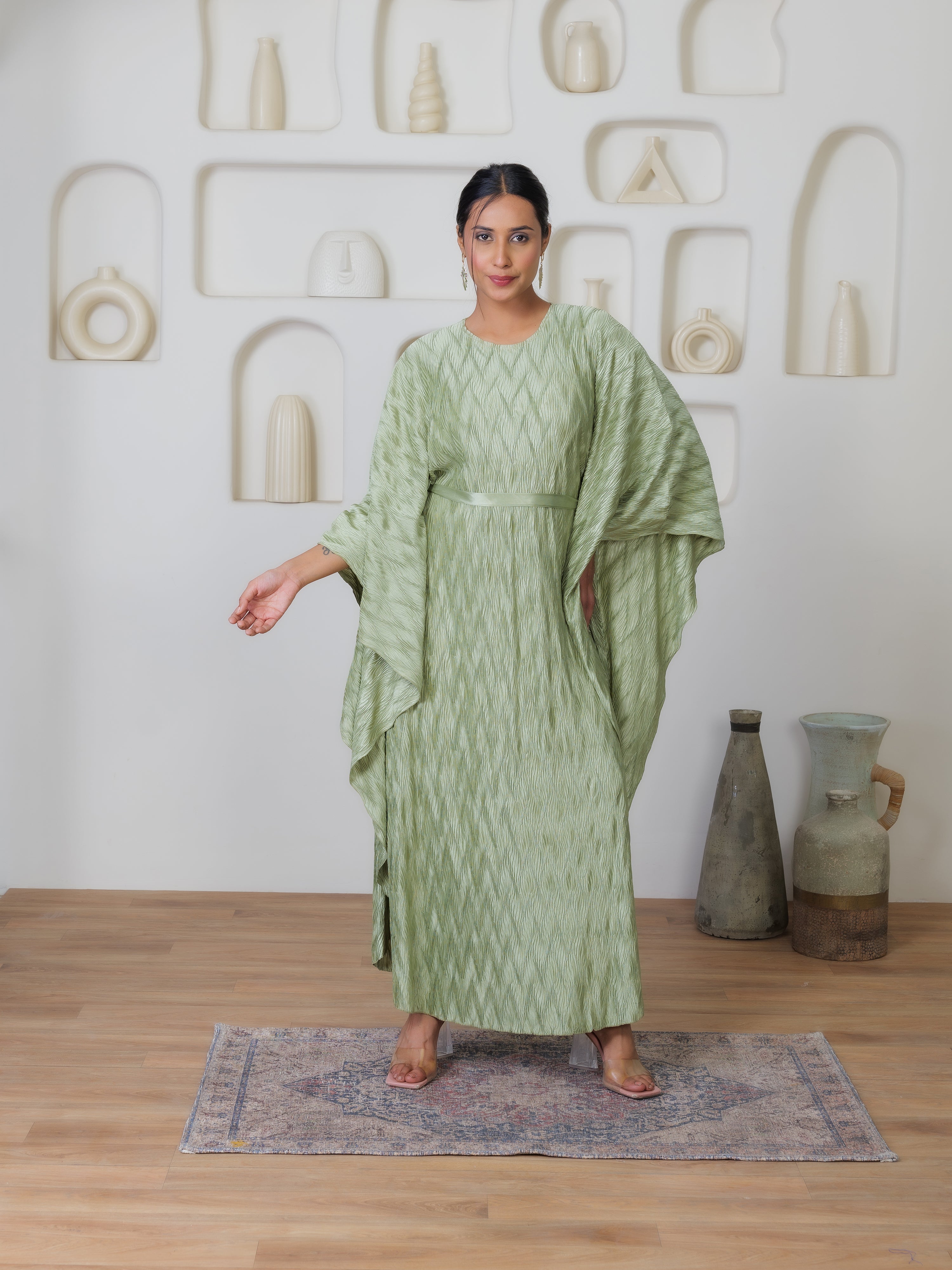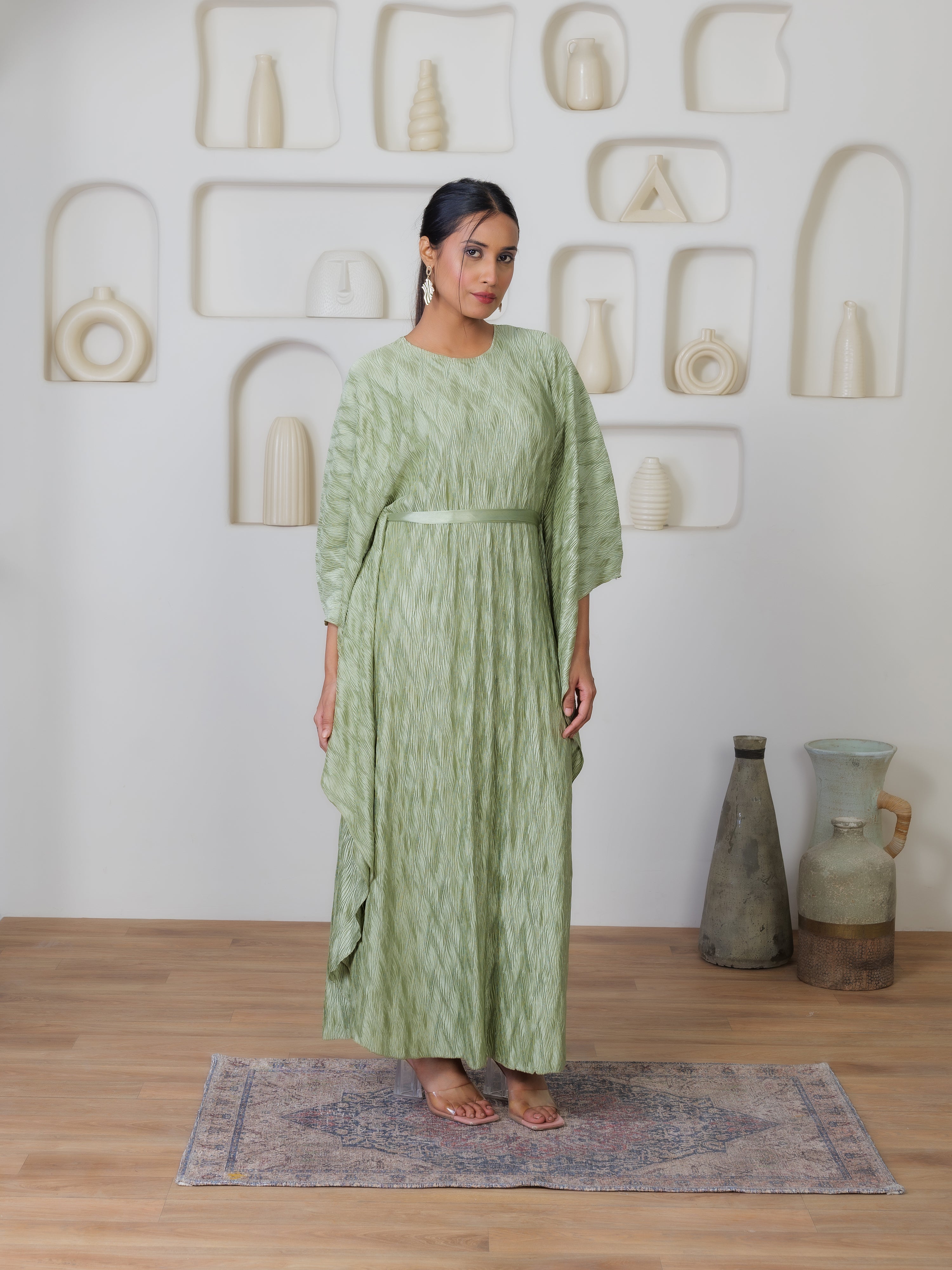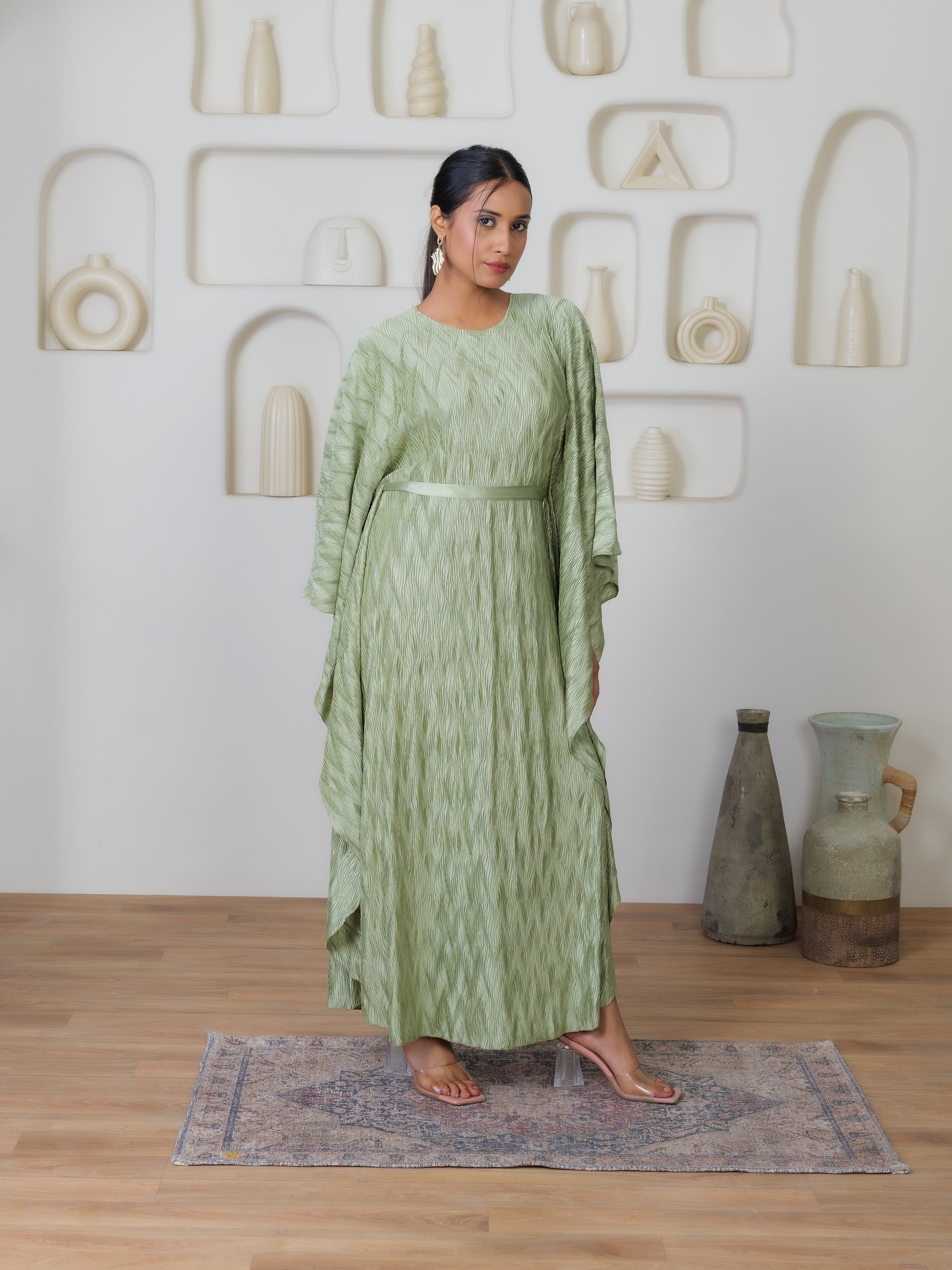 *(Pleated Fabrics do not cling to the body and has a tendency to expand , hence making it possible to fit to different sizes and Body Shapes).