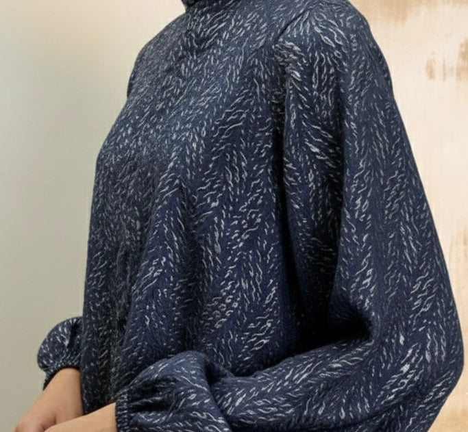 Elevate your festive-winter wardrobe with this stunning metallic jacquard co-ord. Crafted in a deep midnight blue with subtle gold accents, the set features a flowy asymmetrical tunic paired with straight-fit trousers for effortless elegance. The high-neck detail and self-tie waist create a structured yet feminine shape, while the rich fabric adds a touch of understated luxury. Perfect for evening gatherings, intimate celebrations, and elevated winter dressing.