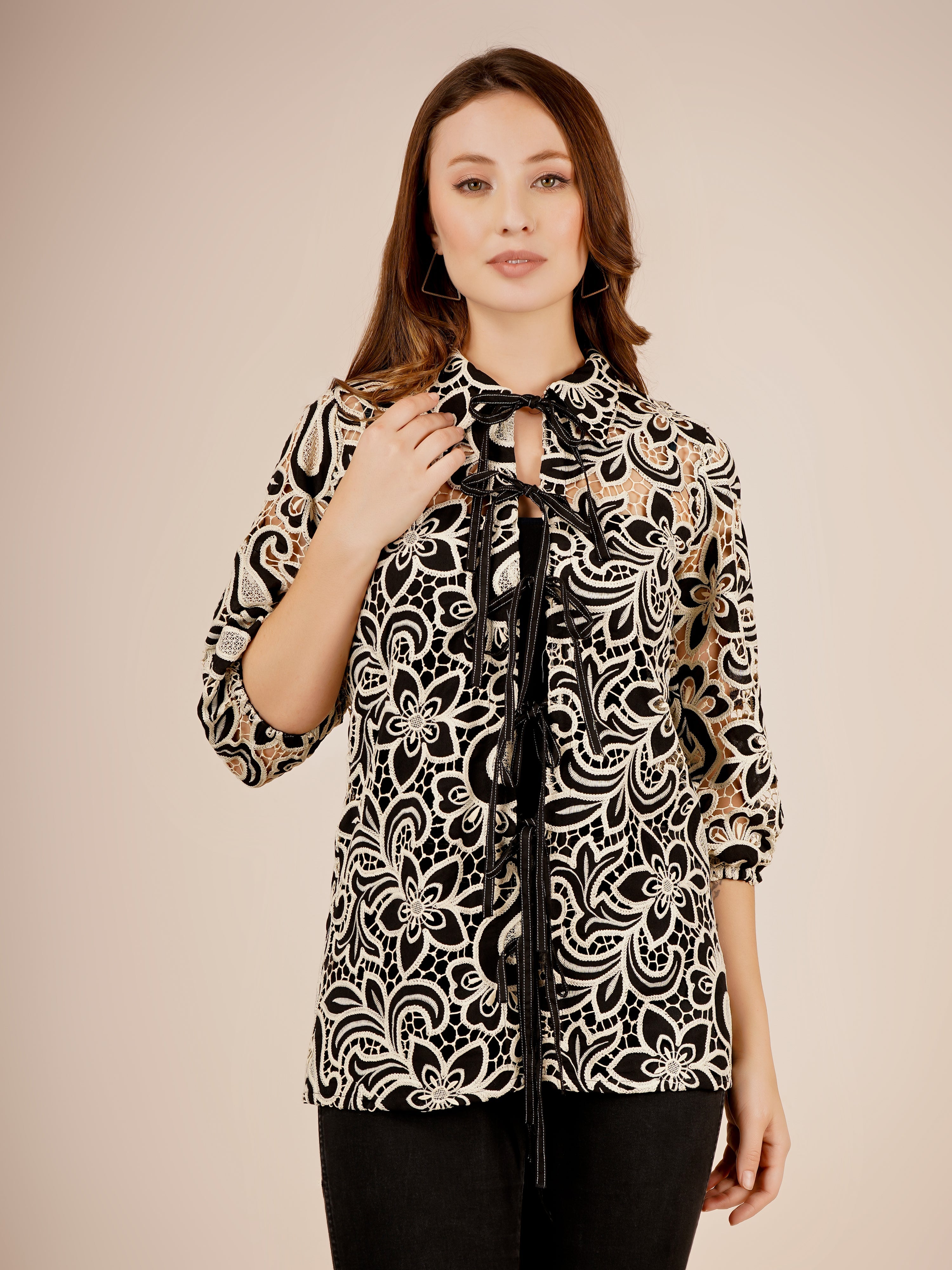 Designed to fit seamlessly into your seasonal wardrobe, it offers both sophistication and comfort, ensuring you look and feel your best. Embrace the season's trends with the timeless charm of our Lacework Top.