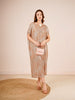Step into the festivities with our stunning Metallic Dress, featuring delicate golden lines woven into the shimmering fabric. Designed to dazzle, this dress comes with a comfortable inner layer, ensuring you feel as good as you look.