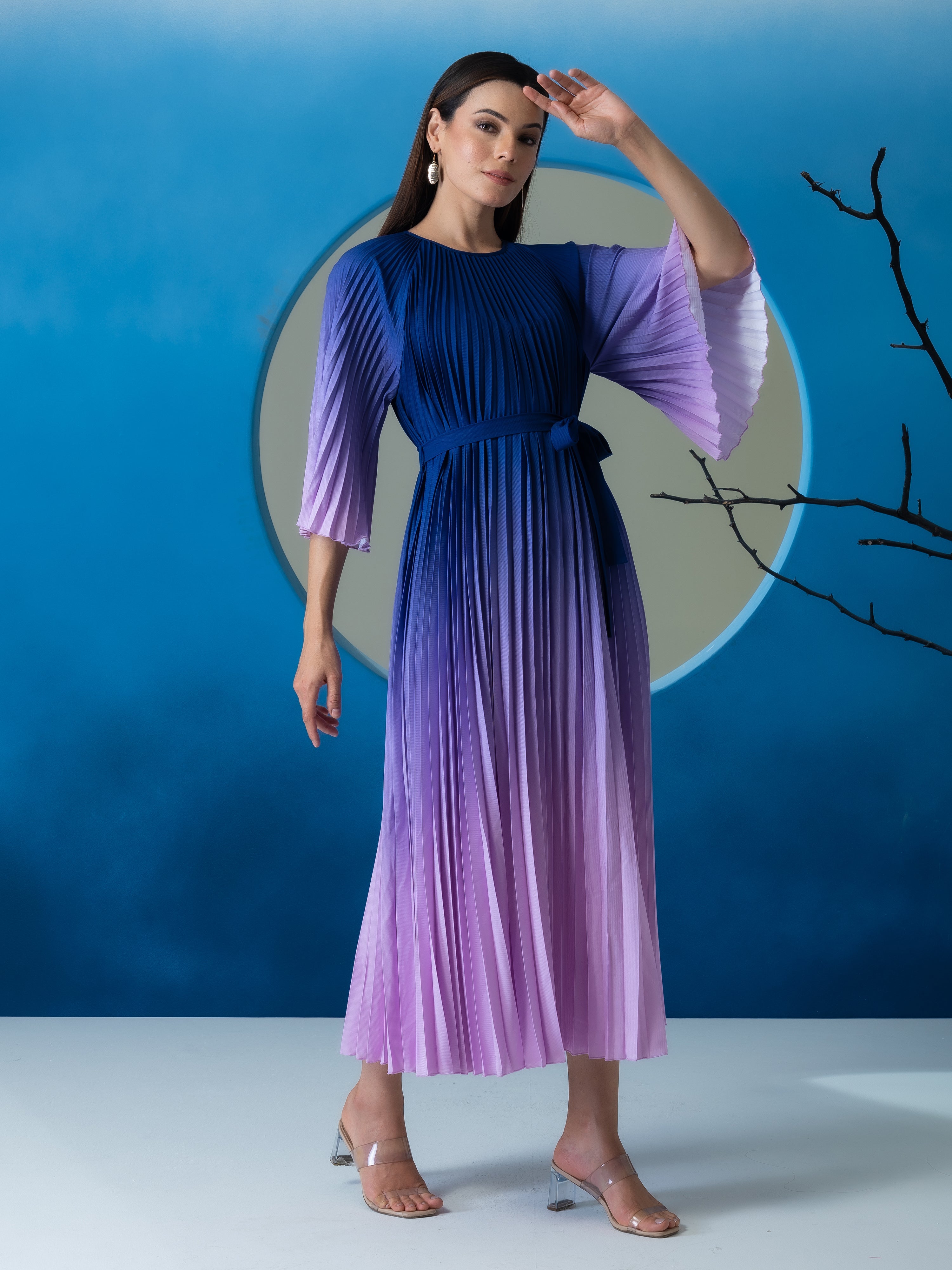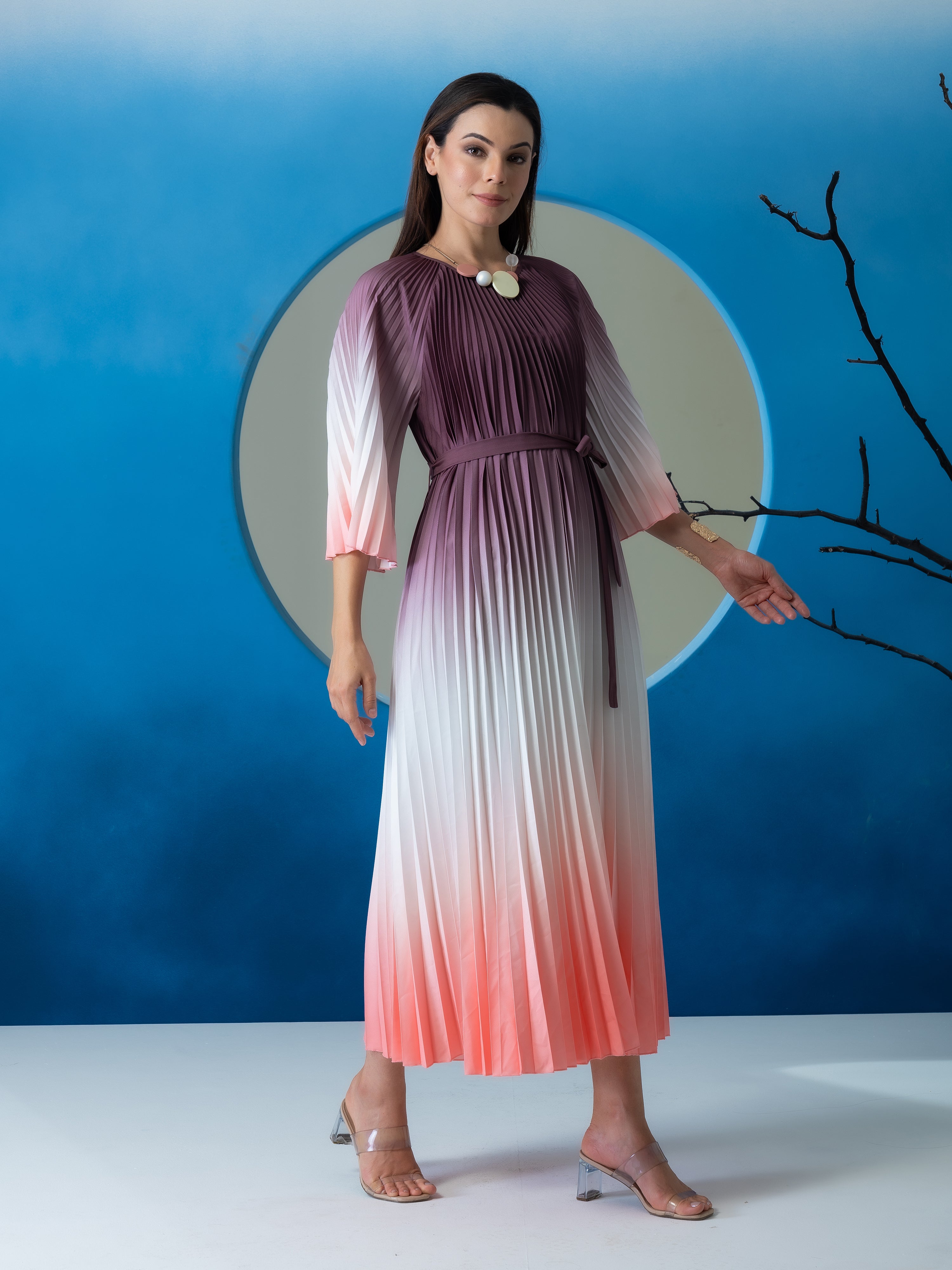 Embrace tranquility and grace with the Serenity Ombre Pleated Dress, a garment that captures the essence of peaceful elegance in every thread. Available in the serene shades of blue, the regal depths of purple, and the earthy richness of brown, this dress offers a color option to suit any event and mood.