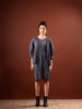 A refined expression of modern minimalism, this textured grey layered dress is designed to elevate everyday elegance. Crafted in a richly structured fabric, the dress features a grid-like surface texture that adds depth and visual interest without overwhelming the silhouette. The matching open-front overlay creates a cohesive, layered look while offering ease and fluid movement.